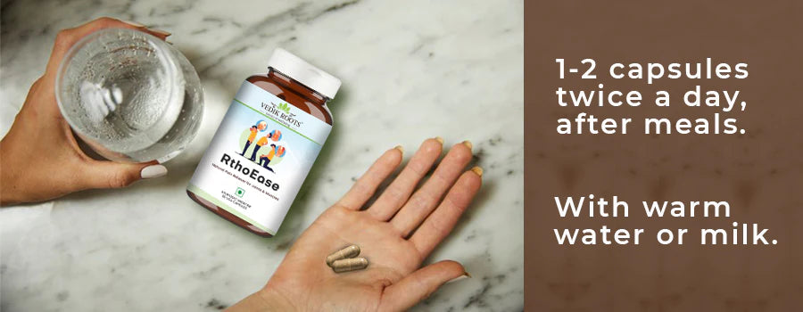 Introducing RthoEase, an ayurvedic medicine for arthritis that provides effective relief from knee pain. This ayurvedic medicine consists of natural herbs like Guggul, Methi, Nirgundi, Hadjod, and others that are quite effective in providing relief from joint pain and inflammation.