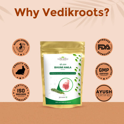 Introducing Vedikroots Bhumi Amla Powder, a natural and highly beneficial supplement for overall health and wellbeing. Our organic Bhumi Amla Powder is made from high-quality dried bhumi amla fruit and leaves, making it safe and effective to use.