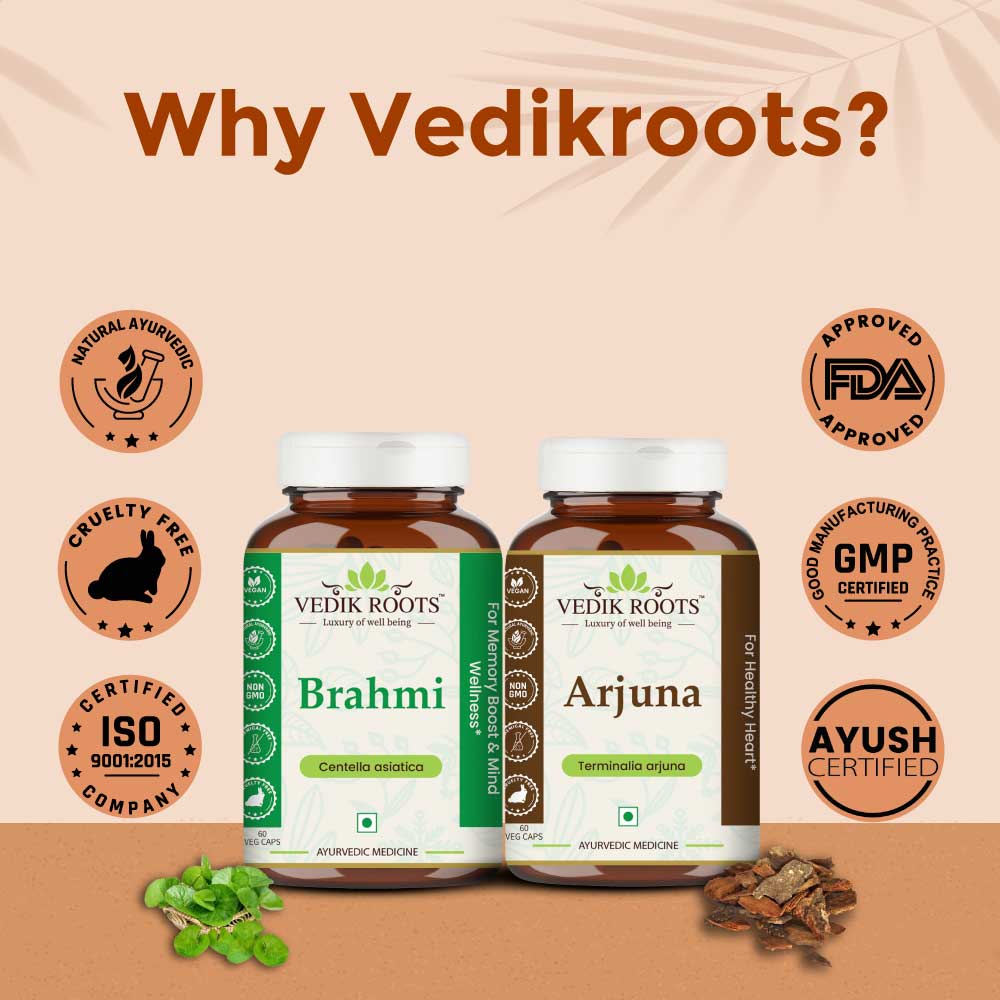 Vedikroots Arjuna Capsules are magical for your heart health. These capsules are derived from the bark from Arjuna tree and are 100% safe and natural to use. Arjuna has antioxidants and contains compounds that help reduce blood pressure and cholesterol levels. Arjuna is also helpful in dilating the blood vessels and dissolving the plaque to improve blood flow.