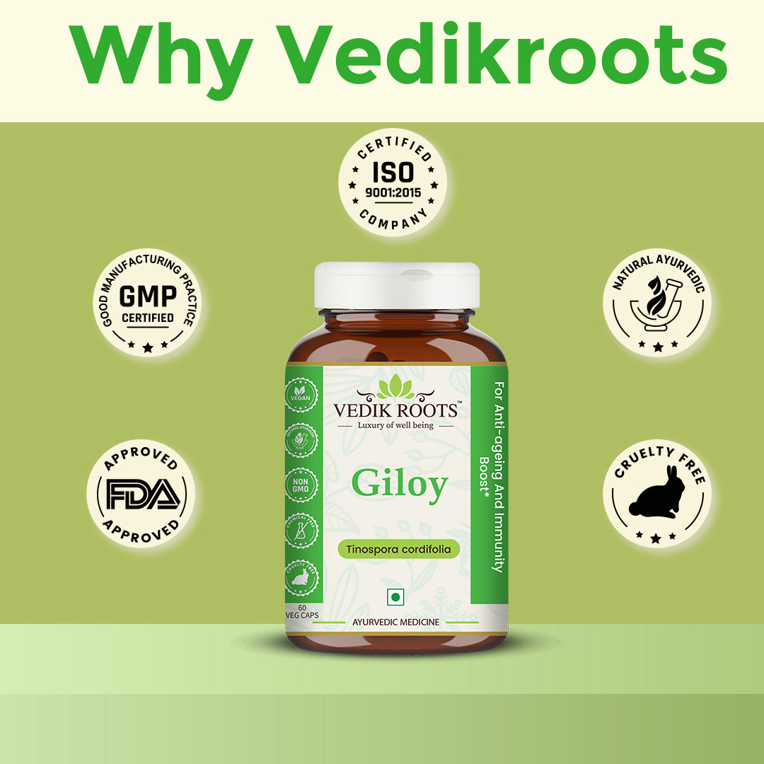 Vedikroots Giloy Capsules are a comprehensive solution for maintaining overall health and wellbeing. Adding them to your daily routine can have a significant impact on your health.