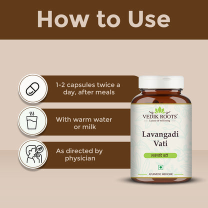 Looking for Lavangadi Vati uses in Hindi? It’s widely known as “खांसी की दवा” (cough medicine) and “गले की खराश के लिए” (for sore throat). Purchase Lavangadi Vati today and say goodbye to discomfort!