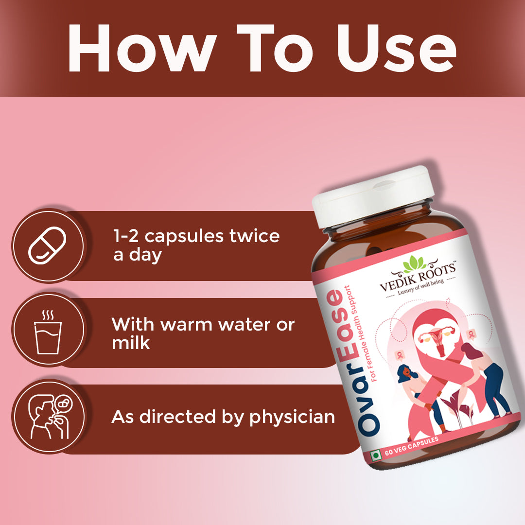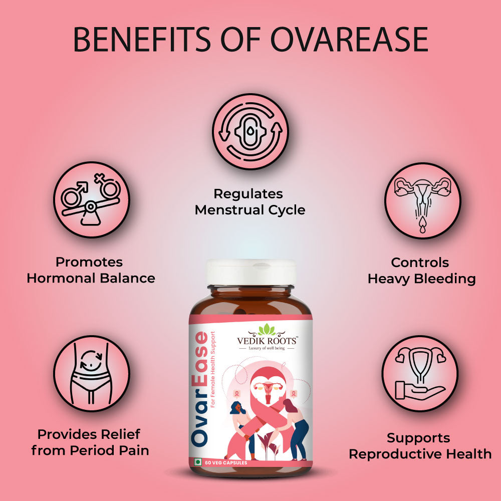 Introducing OvarEase, a safe and effective ayurvedic medicine for irregular periods and other menstrual issues. This ayurvedic medicine helps women achieve pain-free periods naturally.