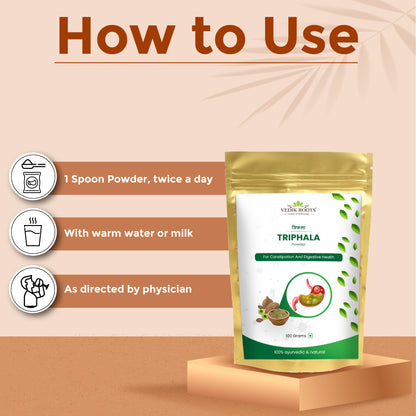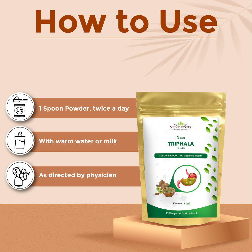 Vedikroots Triphala Powder is a natural and comprehensive solution for maintaining overall health and wellbeing. Regular consumption of this powder supports multiple aspects of your health.